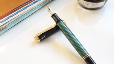 ドイツの老舗万年筆ブランドPelikanのSouverän M400を愛用レビュー。左利きの視点から、書き心地やグリーンストライプの美しさ、万年筆と向き合う時間について綴ります。